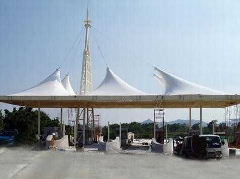 交通膜結(jié)構(gòu)打破了純直線建筑風(fēng)格的模式,以其具有的優(yōu)美曲面造型,簡(jiǎn)潔、明快、剛與柔、力與美的組合,呈現(xiàn)給人以耳目一新的感覺,同時(shí)給建筑設(shè)計(jì)師提供了更大的想象和創(chuàng)造空間。