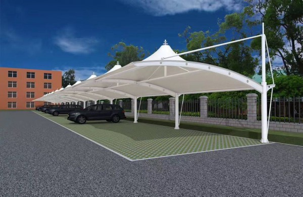 膜結構停車棚因其自重輕,具有良好的受力特點,所以成為大跨度空間結構的主要形式之一。停車場的規(guī)劃和建設成為現代城市規(guī)劃的重要組成部分,在以后的建設里會變得越來越重要。膜結構輕巧、別致的造型在停車場及候車廳的建設中擔當了重要角色,除了滿足防風雨、防日曬等基本功能外,并有較好的標識招攬效果,展現了人們個性化的一面。